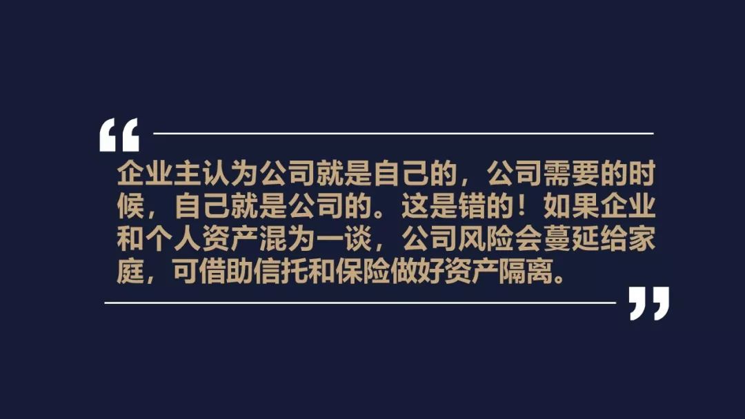 第三,企业主在日常公司经营中,可以借助信托和保险做好企业和个人资产隔离,以防企业经营不善影响家庭生活。