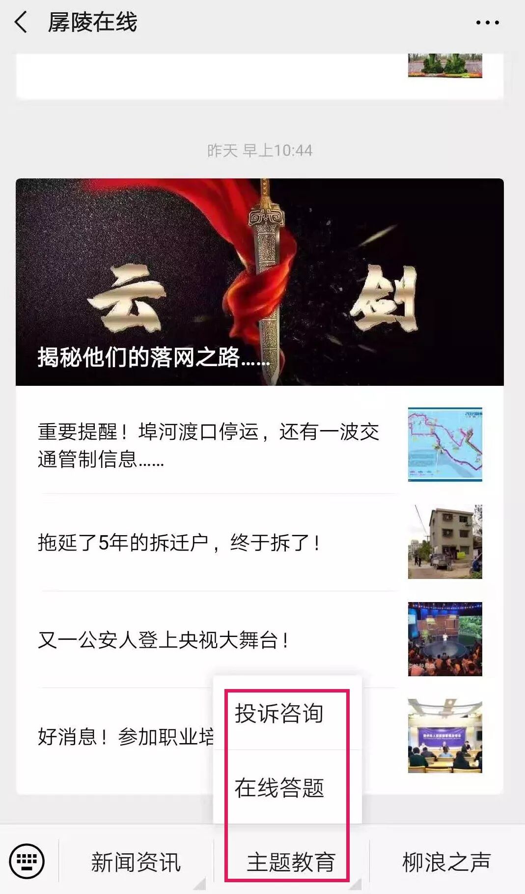 登录微信点击“订阅号”,点击“孱陵在线”,点击首页菜单“主题教育”,再点击“在线答题”,如上图。