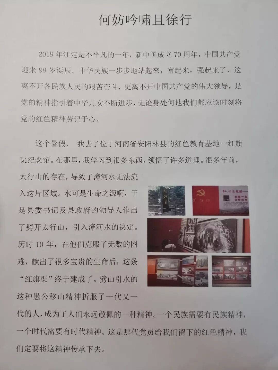 在新中国成立70周年的重大历史节点下,为了“弘扬爱国主义精神,传承中华民族传统文化”,食品与生物工程学院(烟草科学与工程学院)党建办公室主办、党建工作室宣传部承办了以“学思践悟,传承精神,共筑红色堡垒”为主题的暑期社会实践活动。此次暑期社会实践成果展于二教812室开展,活动主要面向食工学院第62期入党积极分子。
