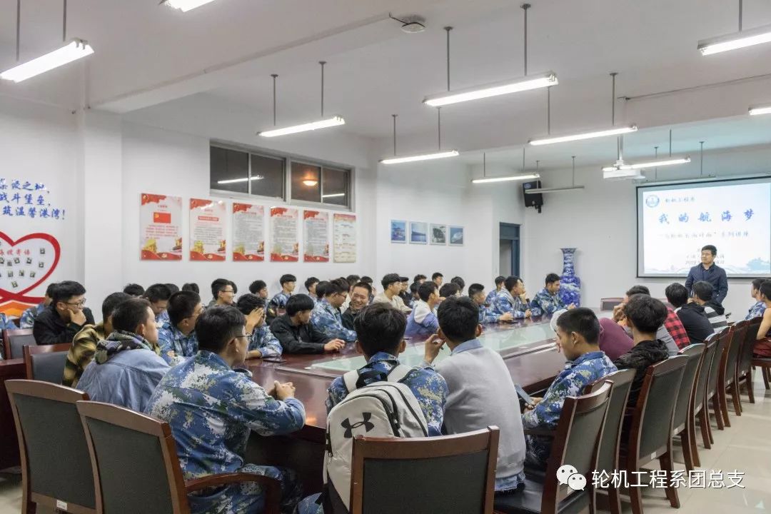 轮机长与同学们分享船上的生活,并以自己的奋斗经历激励航海类专业的同学,要为自己而努力。