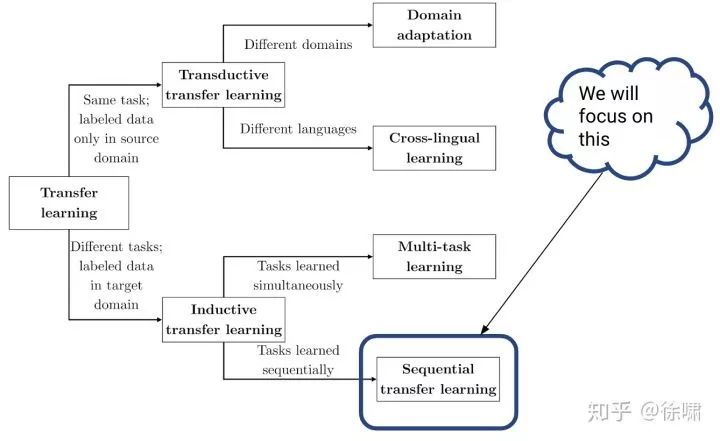 Sequential transfer learning 指的是在一个任务/数据集上学习后迁移到其他任务/数据集上。