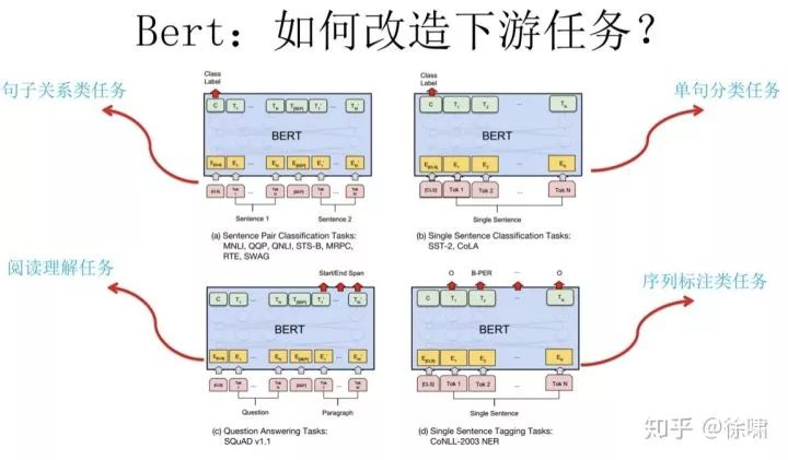 进一步完善和扩展了GPT中设计的通用任务框架,使得BERT能够支持包括:句子对分类任务、单句子分类任务、阅读理解任务和序列标注任务