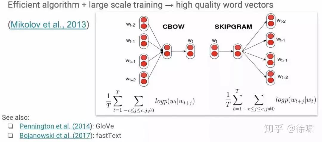 word2vec 的出现,极大促进了 NLP 的发展,尤其是促进了深度学习在 NLP 中的应用(不过word2vec 算法本身其实并不是一个深度模型,它只有两层全连接),利用预训练好的词向量来初始化网络结构的第一层几乎已经成了标配,尤其是在只有少量监督数据的情况下,如果不拿预训练的 embedding 初始化第一层,几乎可以被认为是在蛮干。