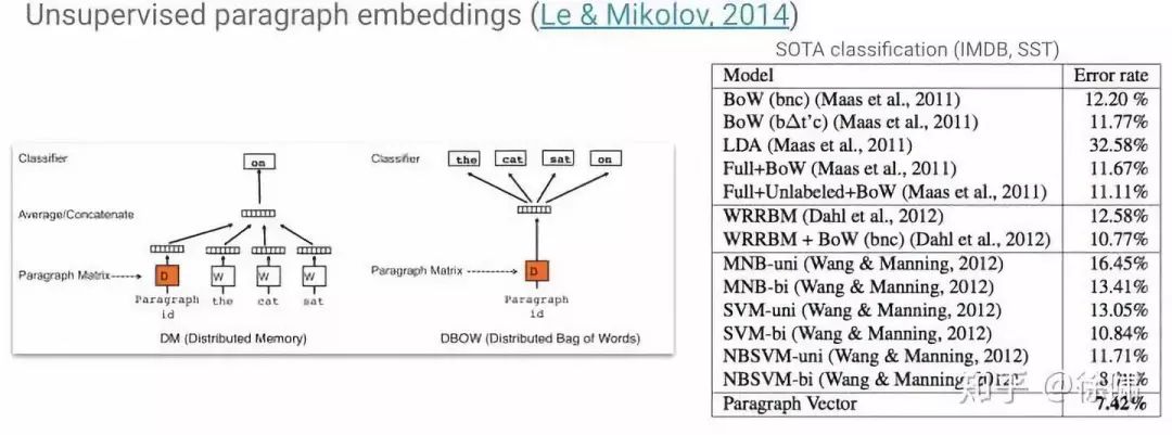 无监督篇章嵌入 (Le & Mikolov, 2014)