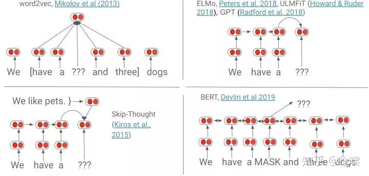 第三点中Next Sentence Prediction的“巨人肩膀”是Skip-gram,Skip-thoughts和Quick-thoughts等工作