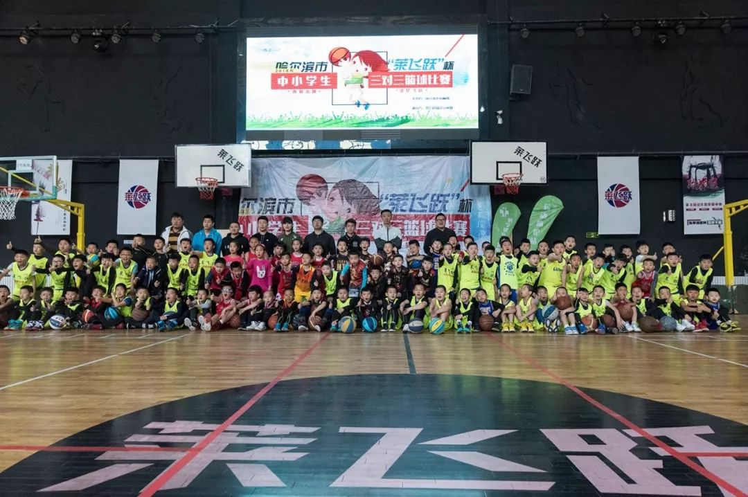 莱飞跃学员在2017年哈尔滨市“莱飞跃”杯中小学生三对三篮球比赛上合影