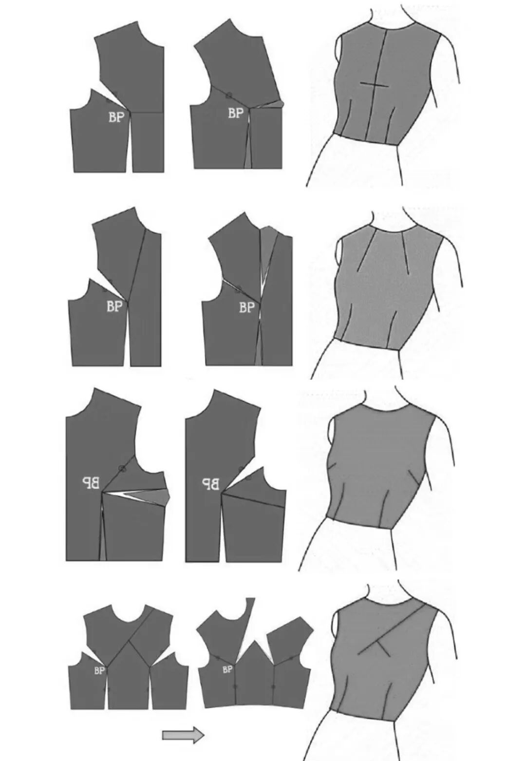 第三步,确定底图,首先分析新款式有什么样的要求,根据服装款式的要求在基型上进行变化(变化的方法:a、几何作图法;b、剪切法),最后达到新款式的要求。