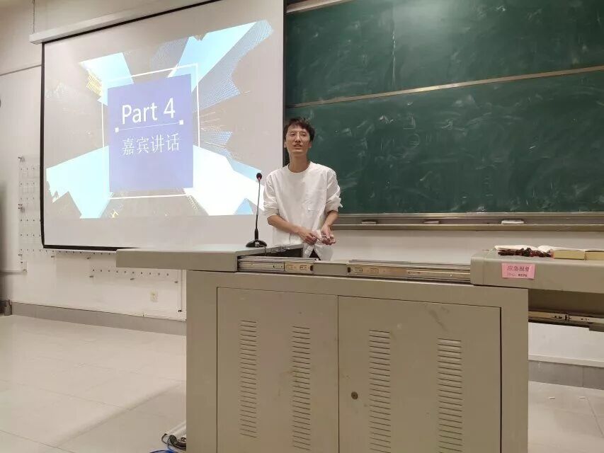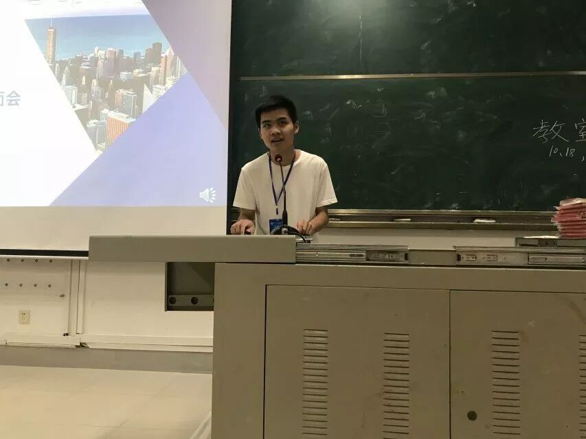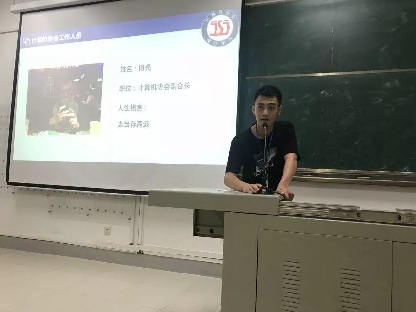 陈光辉学长上台发言,讲述了自身的经历,鼓励同学们认真学习,并且表示对计算机协会有信心,计协是一个能使大家成为更优秀的人的地方!