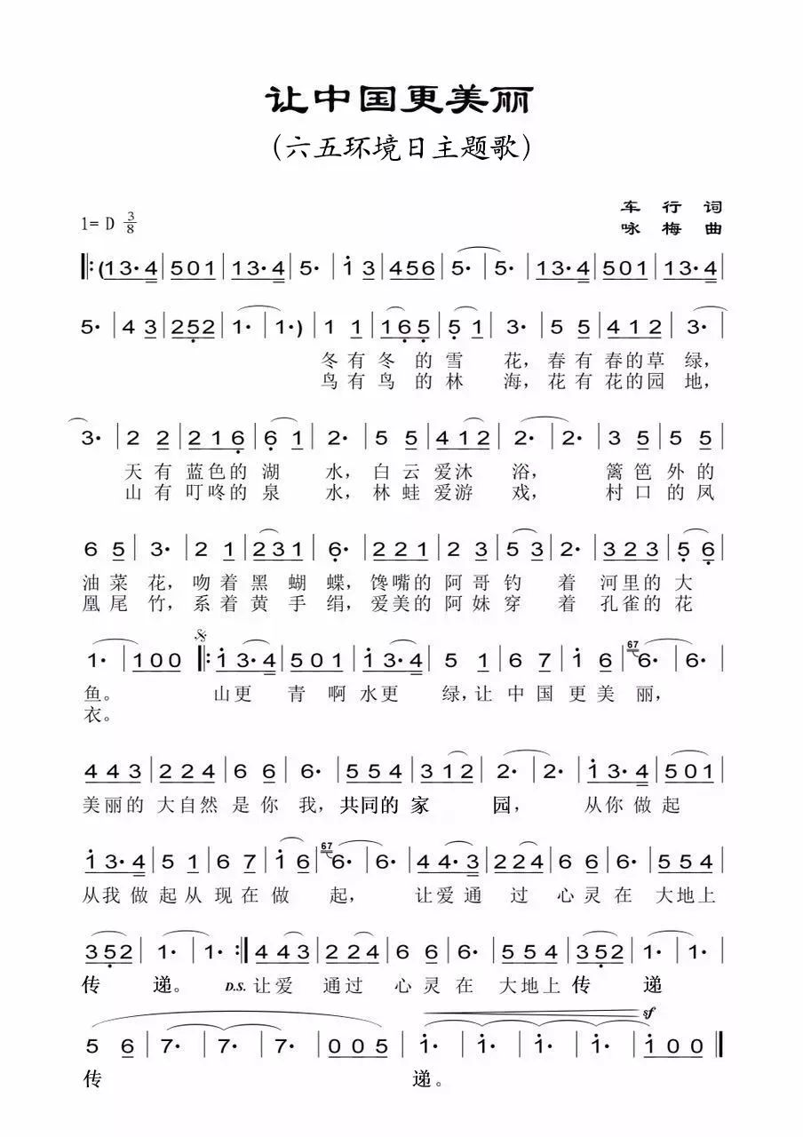2019年六五环境日前,生态环境部发布六五环境日主题歌曲《让中国更美丽》2019领衔示范版,同时面向社会征集该歌曲优秀演唱及器乐演奏作品,并择优在生态环境部官方微博、微信等平台陆续展播。