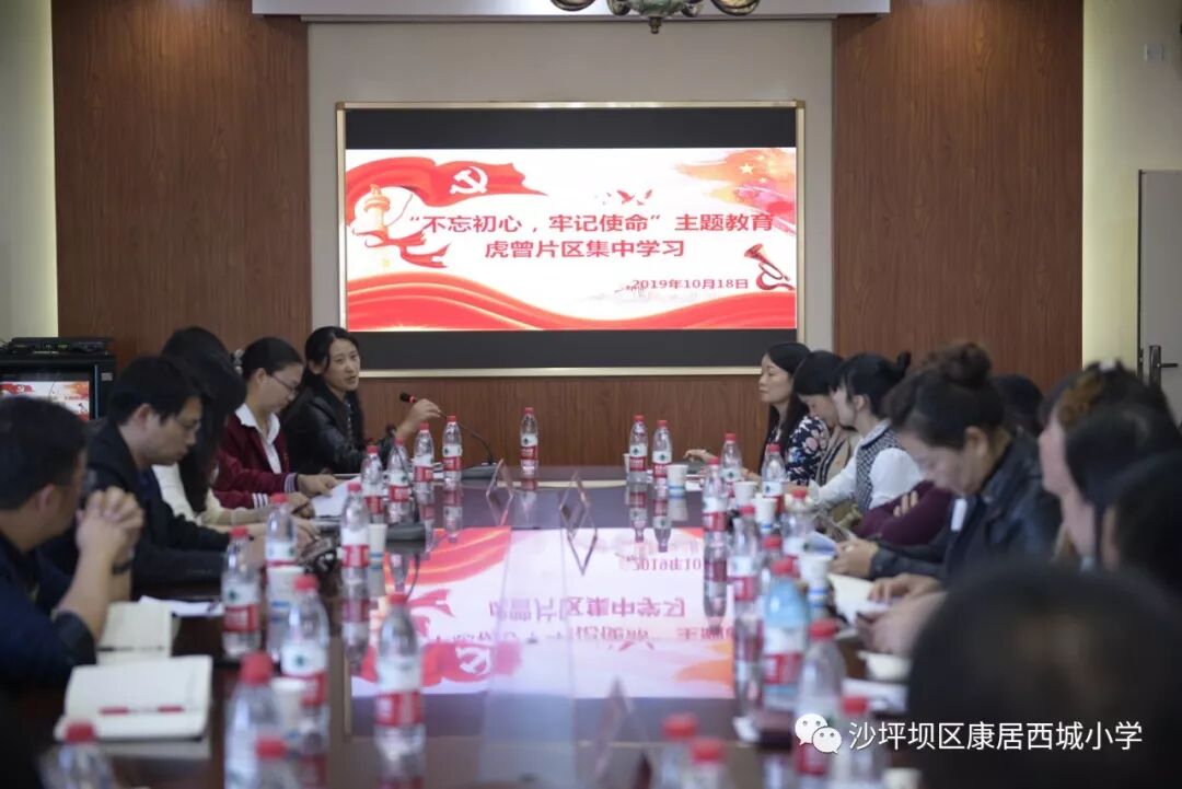 为扎实开展“不忘初心、牢记使命”主题教育,2019年10月18日下午2:30,虎曾片区中心组在康居西城小学开展了主题教育学习。沙坪坝区教育委员会中教科薛毅然科长莅临会场指导,虎曾片区街镇代表、学生家长代表以及中心组全体成员参加了此次学习。会议由中心组组长王海洋主持。首先,康居西城小学郑容校长对学校作了全面的介绍。回顾学校建校以来的艰辛历程,依据学校实际确立“以爱育爱,爱满校园”的办学理念,三大工程建设“课程建设、教师队伍建设、学校文化建设”,推动学校全面发展,不断取得丰硕成果。