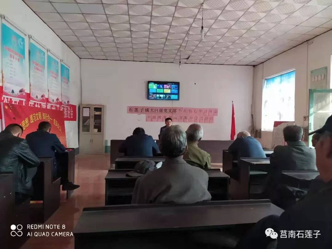 按照石莲子镇“不忘初心、牢记使命”主题教育工作安排,10月20日上午,镇党委书记惠汝飞同志为机关全体党员干部讲授“铭记初心,勇担使命,做新时代初心和使命的践行者”为主题的专题党课。全镇3150余名在家党员及外出务工党员通过党课直播视频接受党性教育。