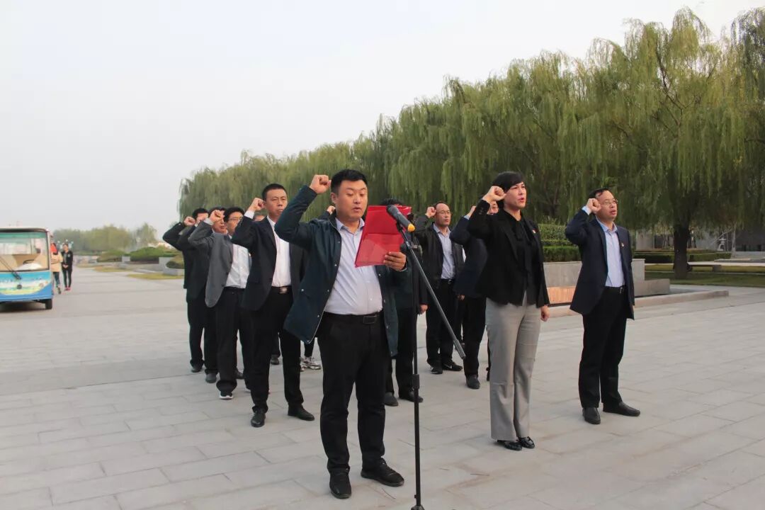 陈列馆参观结束后,班子成员、总支书记在牛头镇抗日武装起义纪念碑前,面对鲜红的党旗,再一次举起右拳,重温了入党誓词,在重忆往昔中感怀党恩,在重温誓言中铭记宗旨。