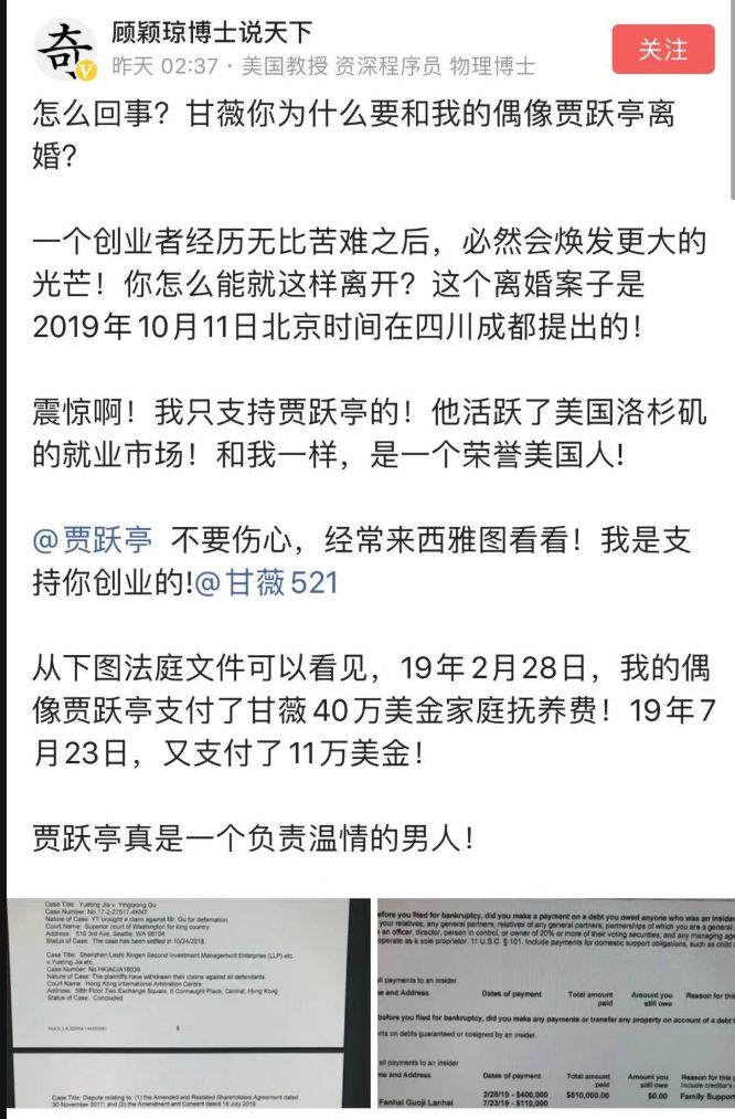 顾颖琼在最后称:“贾跃亭真是一个负责温情的男人! ”