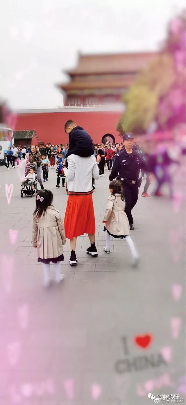 甘薇前几天发了带儿子女儿去天安门游玩的图。