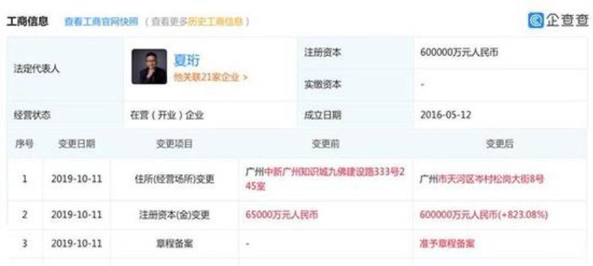 10月11日,由小鹏汽车的运营主体广州橙行智动汽车科技有限公司全资控股的子公司广州小鹏汽车科技有限公司发生注册资本变更,由原来的6.5亿元人民币增至60亿元人民币,增幅达823.08%。