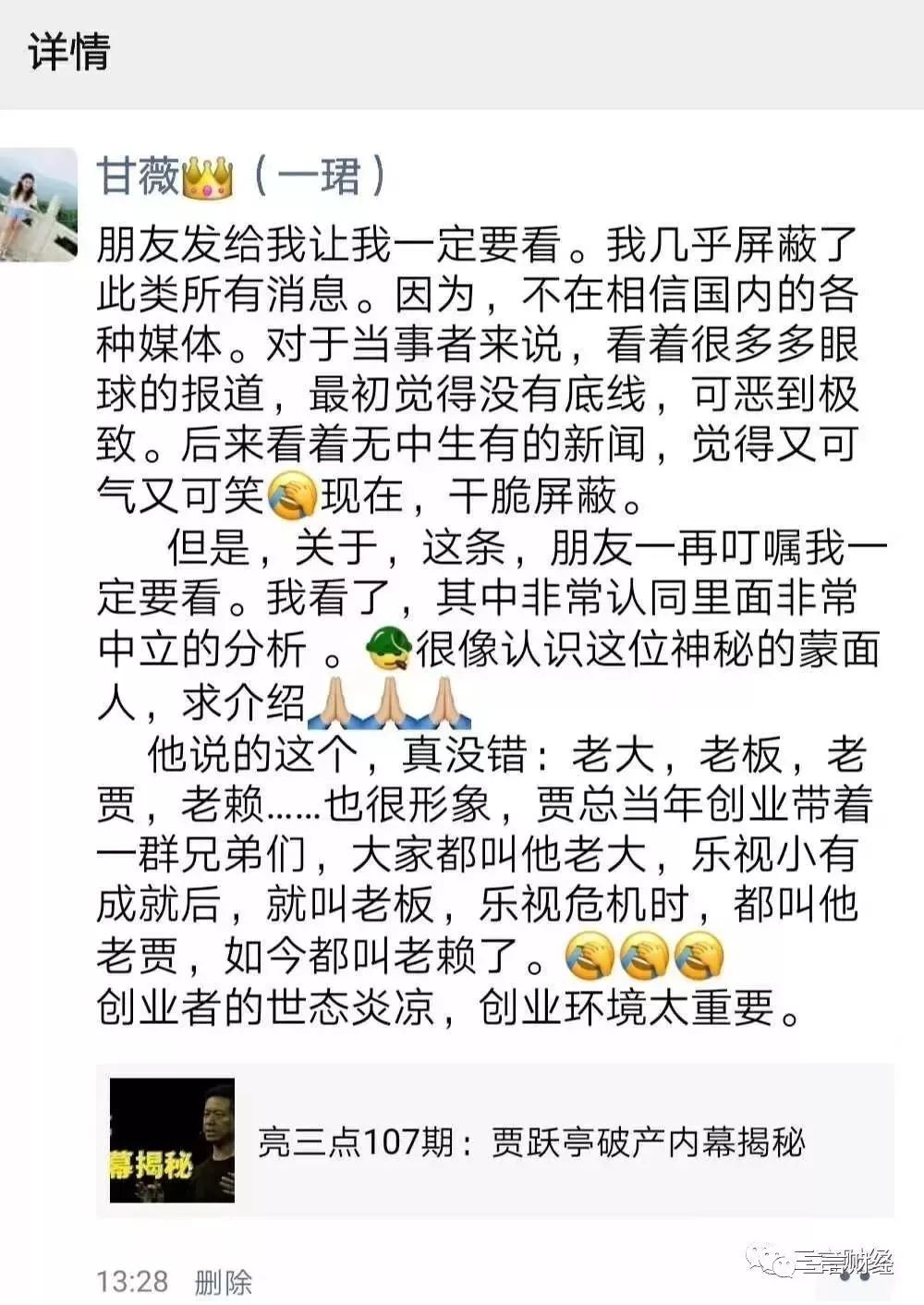 图片来源:破产文件截图 目前,贾跃亭和甘薇方面未就此事发声。值得一提的是,而就被曝离婚此前一天,甘薇朋友圈发文谈贾跃亭破产一事:从“老大”到“老赖”是创业者的世态炎凉。