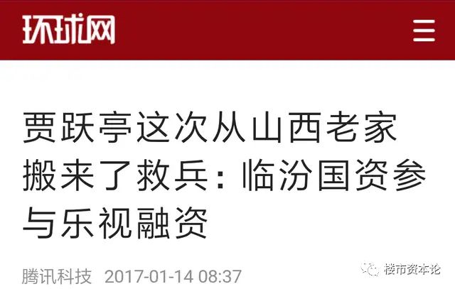 2017年1月13日,据乐视网称,乐视在与融创中国的股权合作过程中,还悄然引进了另外两名投资者:华夏人寿和宁波杭州湾新区乐然投资管理合伙企业(乐然投资)。华夏人寿和乐然投资分别以4亿元和14.3亿元的价格,获得了乐视致新1.1%和4%的股权。这其中,乐然投资正是乐视控股与山西临汾国资及有着央企背景的英大资本联合所有的。深圳英大资本管理有限公司持有乐然投资57.06%股份;临汾市投资集团有限公司持有乐然投资28.53%股份。折算下来,这一次临汾市投资集团共计出资4.14亿元。 楼市资本论认为作为地方国企,一出手相助就是上亿资金,充满了温馨关怀,这份来自老家的支持,着实让人唏嘘不已。