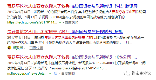 当年,贾跃亭的老家军团投资入股乐视也是彼时的热点事件,得到来自环球网、腾讯科技、搜狐和澎湃新闻等权威媒体的关注报道。彼时,正是融创与乐视合作的关键节点。