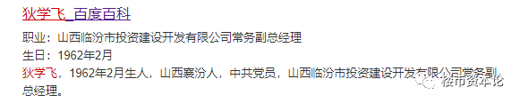 与此同时,临汾市投资集团有限公司的法人代表兼董事长狄学飞,也是山西襄汾人,和贾跃亭是老乡。