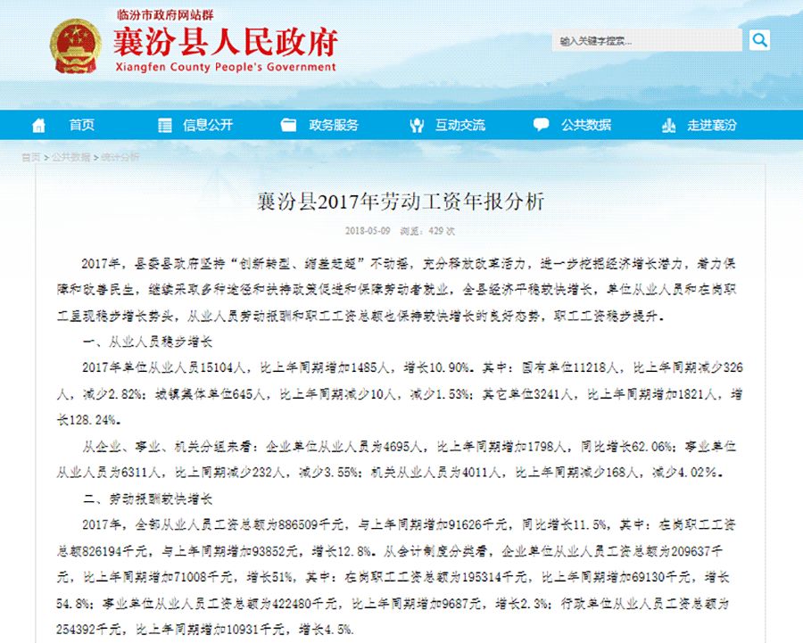 据襄汾县统计局数据,拥有50万左右常住人口的襄汾县,2017年全县从业人员(行政单位及企事业单位人员)的薪酬为月均收入5197元,还不到贾跃亭的8‰。这还是襄汾的白领人群,襄汾县更广大的农业人口都没算在内。