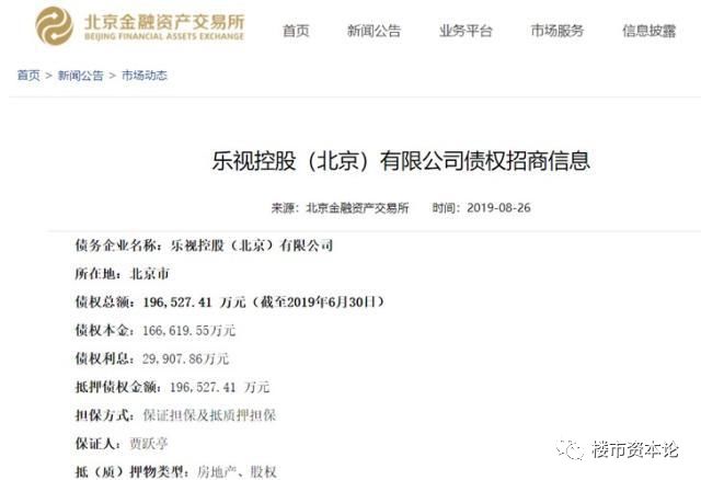 乐视控股(北京)有限公司以其持有的这两家公司100%股权提供质押担保,保证人为贾跃亭。截至今年6月30日,债权总额约为19.65亿元,包括16.66亿元债权本金和2.99亿元债权利息。