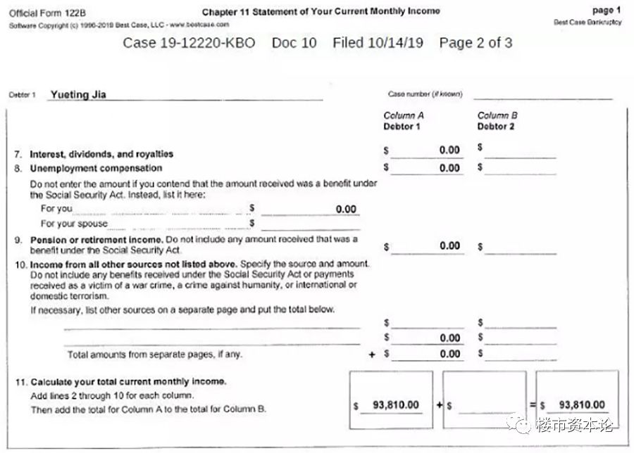 贾跃亭的收入证明 据《每日经济新闻》消息,破产公司文件和申请管理公司Epiq Cases网站披露的一份文件显示,贾跃亭在10月14日提交破产申请文件前6个月,每月的月收入为93810美元(约合人民币66.4万元)。这么高的月收入足够每月买辆高配版的奔驰了。