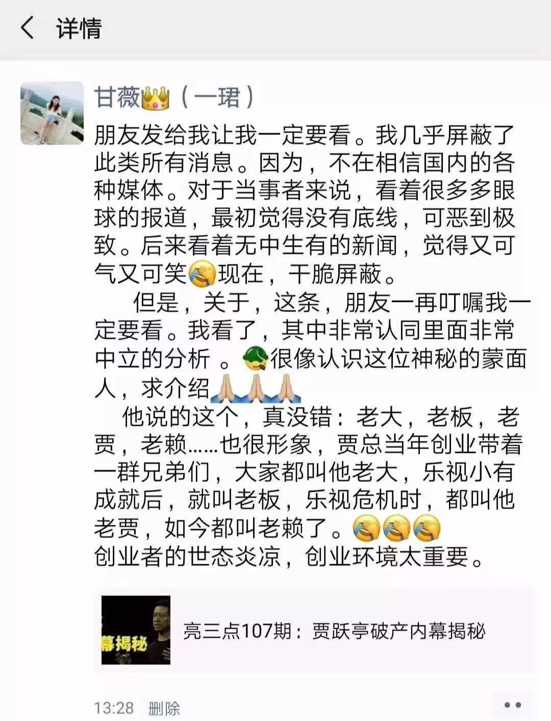 哪怕在申请离婚后,甘薇依然还在为贾跃亭鸣不平。