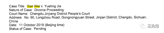 据法律服务企业Epiq Cases网站最新披露的贾跃亭破产文件显示,贾跃亭和其妻子甘薇于今年10月11日在成都市锦江区人民法院申请离婚,该案状态显示为审理中。