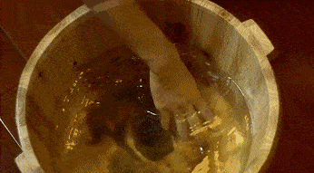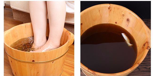2.等待分解时双脚架在桶边,使蒸汽热度打开毛孔