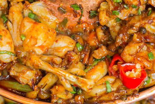 蛙肉煮得很酥,外表金黄的色泽很是诱人,轻轻一戳整块肉就脱骨啦入口爽滑细腻,不愧是“肥美”的代名词!