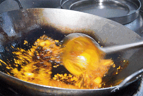 再放入蒜姜小榨油和秘制酱料煸炒出锅