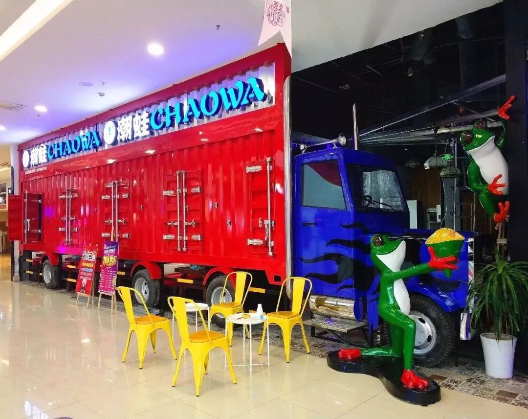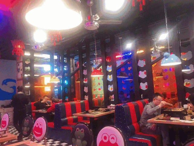 店面装修风格偏工业风,主题就是各种蛙,随便看一眼都是蛙的身影,加上极具魔幻色彩的黑白格地板,瞬间把你拉入蛙的奇幻世界。
