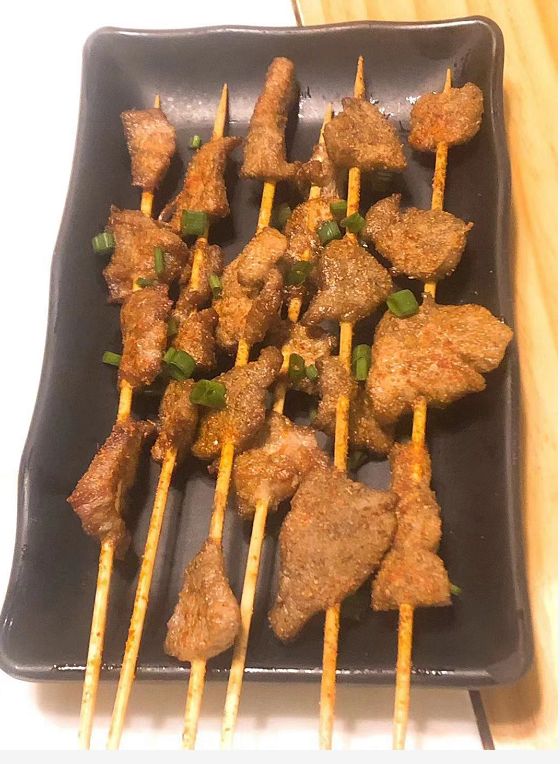 烤牛肉串,羊肉都是精选优质牛肉,事先用秘制调料腌制过的,不会特别难嚼,香浓麻辣,带劲。