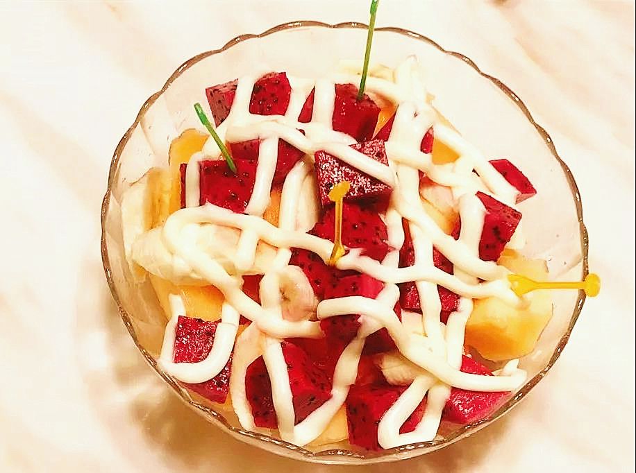 油腻的东西吃多了,水果沙拉配点新鲜水果茶,清新解腻,这感觉贼爽!