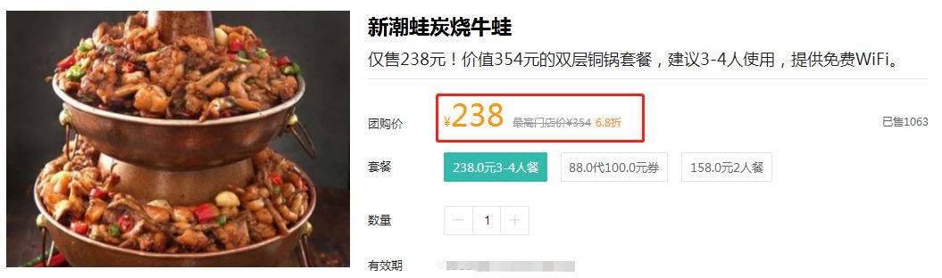 在x团,潮蛙·炭烧牛蛙3~4人餐要238元