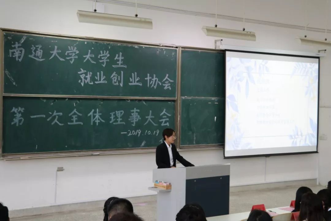十月十九日(周六)下午两点,南通大学大学生就业创业协会2019—2020年第一次全体理事大会圆满结束。参与本次会议的有:指导老师姚蓓、严军英;会长曾永宇;副会长阮晨成、邓文、赵莹莹、付嘉奕;各部门部长及副部长以及全体19级理事。