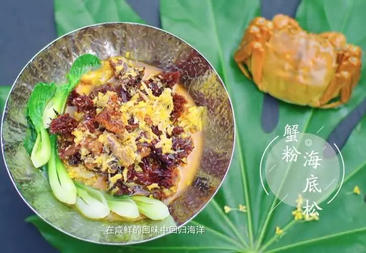 以蟹粉入味,是海底松这道菜对今天人们饮食习惯的迎合。蟹粉的浓鲜和油脂令蜇头的味道更为厚重浓郁,在咸鲜的回味中回归海洋。