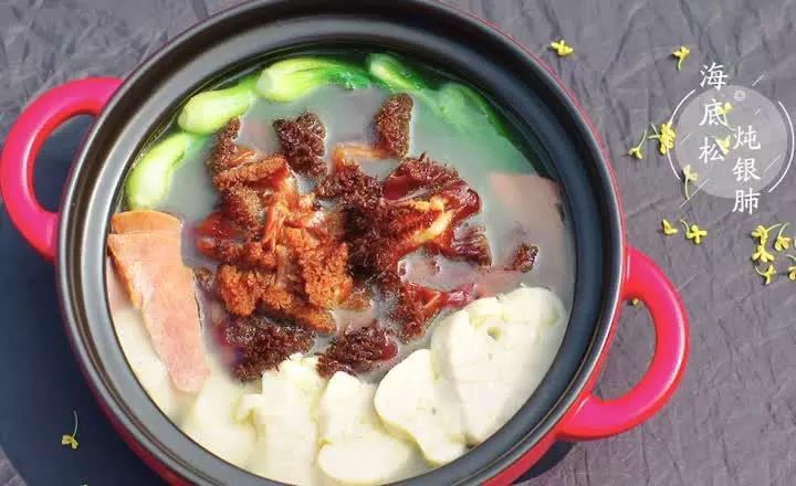 海蜇,学名水母。使用食盐、明矾腌制后,呈现出爽脆的口感。一般而言,海蜇越陈,质量越好,陈年海蜇呈现出白色、黄褐色或红琥珀色等自然色泽,肉质厚实富有韧性。海蜇的口腕部分,俗称“海蜇头”,口感更佳。对蛰头的处理,姜禾已经驾轻就熟。泡发,讲究先冷后热。泡发后的蜇头只剩五分之一大小,这时用高汤炖煮,令其吸饱汤汁入味,再和鲜猪肺片、火腿片慢炖。这道菜,是南通著名儒医金聘之为清末状元张謇所设计的食疗菜--海底松炖银肺。成菜蜇如松枝,鲜香柔脆,肺白如银,入口即化。