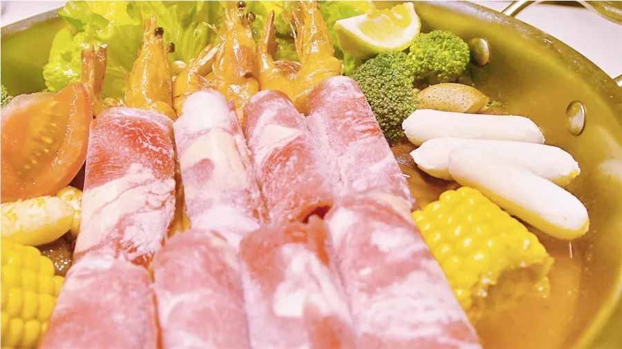 酸辣的锅底加入鲜虾、香茅、南姜等