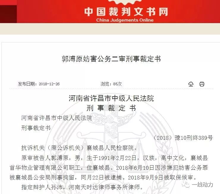 河南省许昌市中级人民法院刑事裁定书(2018)豫10刑终389号抗诉机关(原公诉机关)襄城县人民检察院。