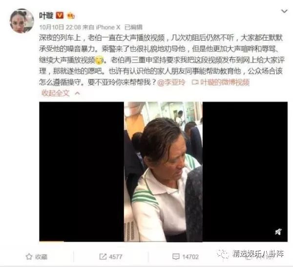 最近,演员叶璇在微博上曝光了一位“高铁外放男”,深夜之中列车里乘客们都在休息,但一位老伯却拿出手机大声地外放声音,乘客、乘警多次劝导无效,反而遭其辱骂,最终叶璇选择了将这件事曝光在了网络上,引发了网友的热议。