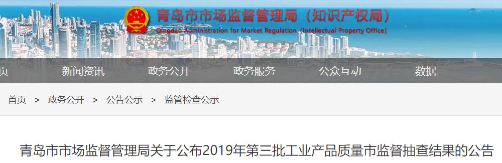 10月17日,青岛市场监督管理局公布《2019年第三批工业产品质量抽查公告》。