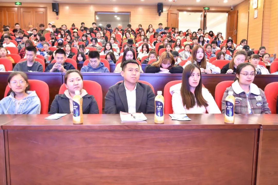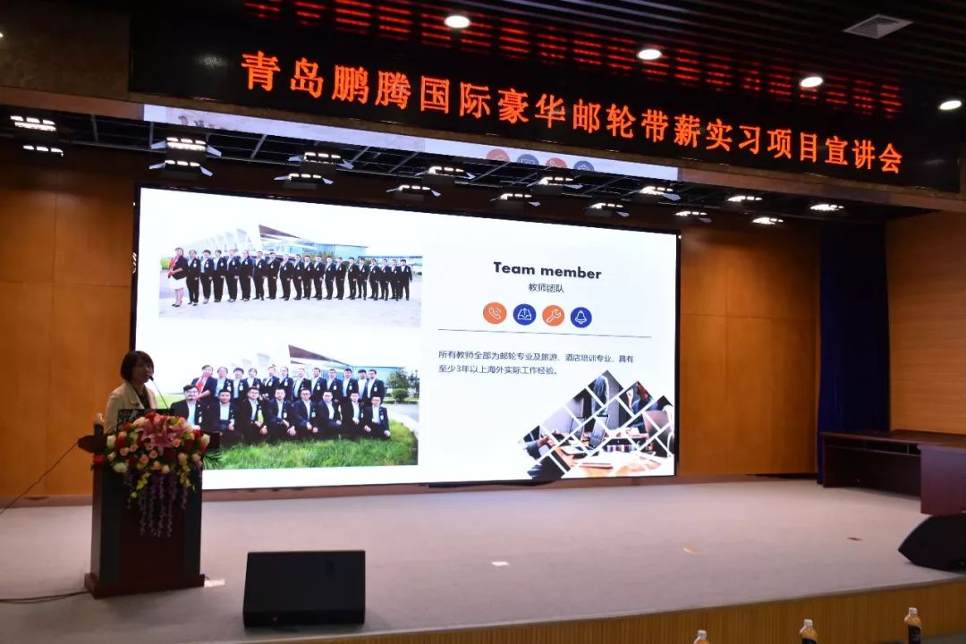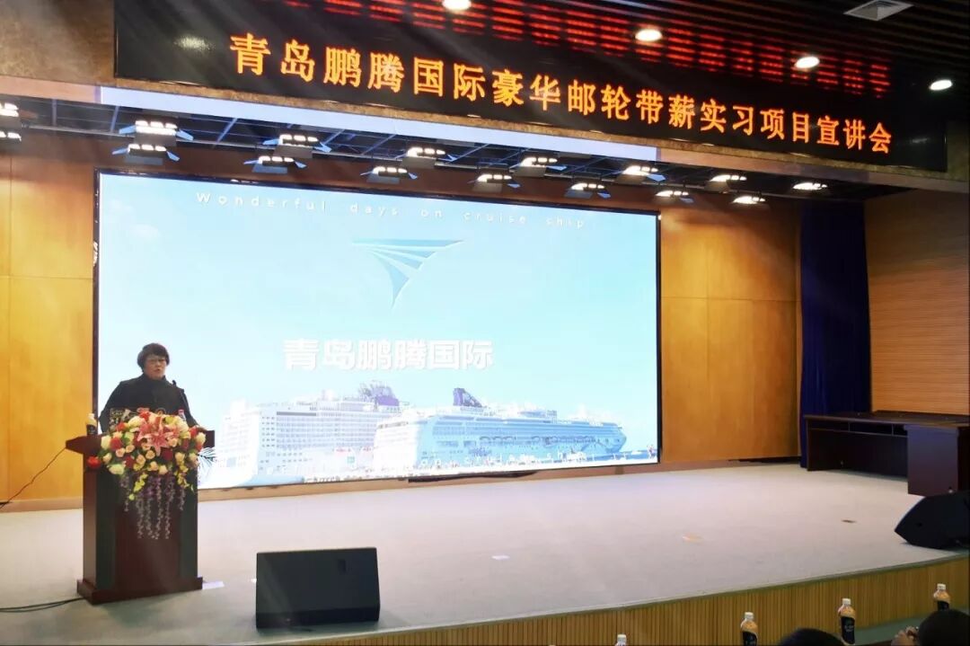 刘黎静老师在图书馆报告厅为我院师生进行了《青岛鹏腾国际豪华游轮带薪实习宣讲会》。此次宣讲会由王军院长主持。