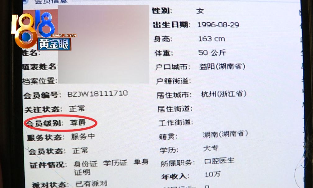 杭州金玉良缘婚姻服务有限公司 田经理:“(核实得怎么样了?)他一直不接我们电话。但是他报名时五证齐全,身份证、房产证、单身证明都有的。(单身证明指的是什么?)是未婚的承诺书和户口本。”