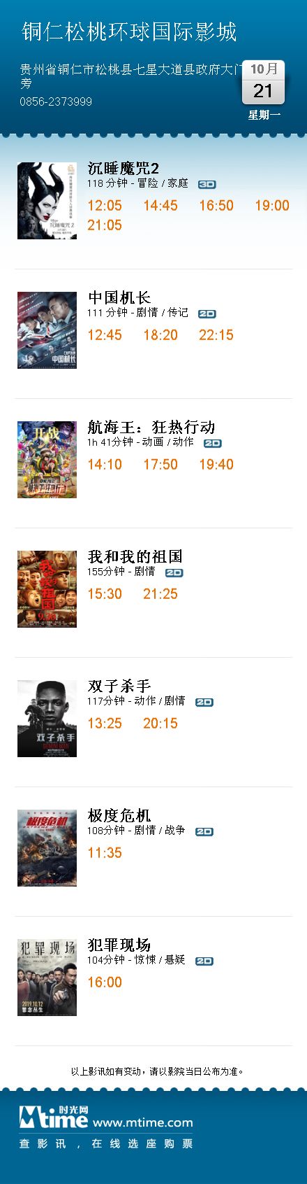 影城地址:松桃县七星大道御府一号(县政府大门旁)