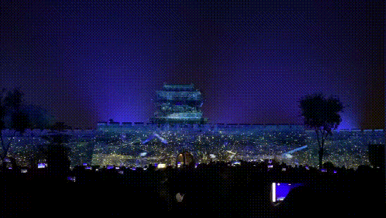 值得强调的是,平遥古城光影秀投影画面的超高分辨率,超越了目前演出市场中最高的8K分辨率,实现了13500点,对迎薰门楼体实现了全方位的精准覆盖,画面视角可辐射整个广场,产生强烈的视觉冲击力。