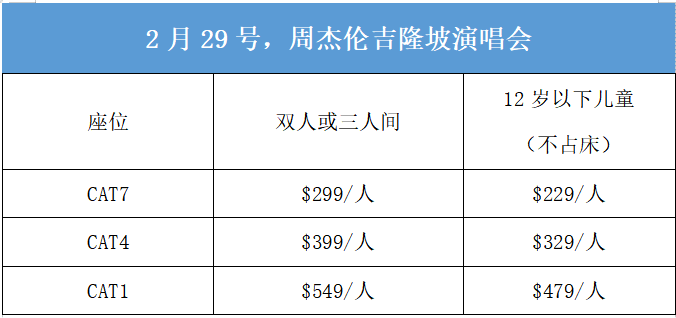 虽然官网已经是一票难求,但是,作为一名周董的脑残粉万事通旅行怎能错过这次和“小公举”见面的机会! 独家重磅售票福利重磅来袭: 2020年2月29号周杰伦演唱会门票 +1晚吉隆坡酒店住宿+新加坡-吉隆坡往返车辆接送低至$299新/人!