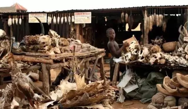 西非多哥共和国的巫术市场,里头贩售大量的动物尸骨以及巫术道具。