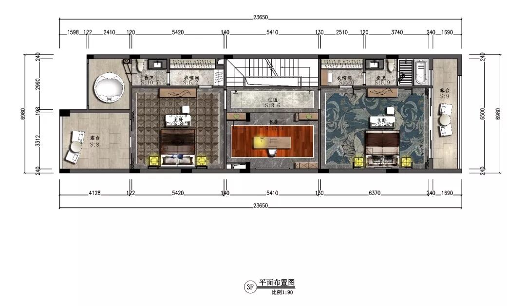 8、别墅奢华:每层建筑面积达到200多平米,实际使用面积超过230平米,拥有8米宽近60平米的超大客厅,5带浴室套间3公共卫生间并附带1家庭影院;