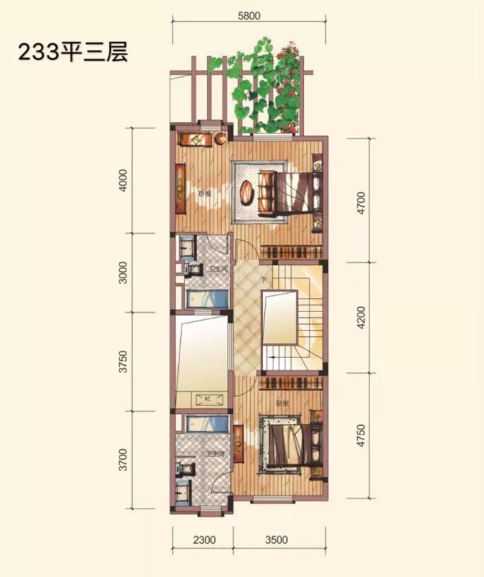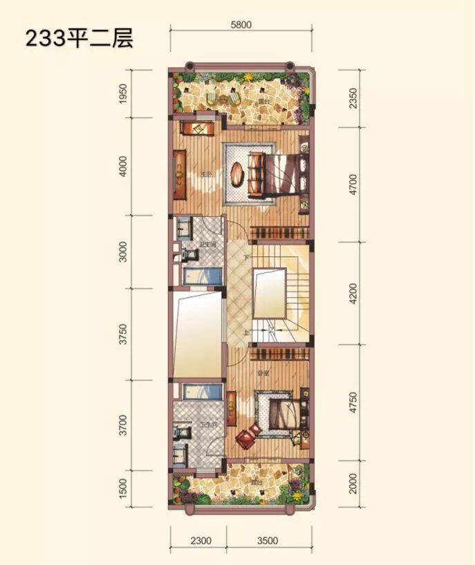 联排(中位):233平 总价约:850万